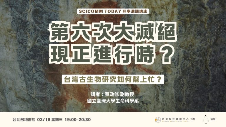 3/18,我們邀請長期研究古生物的蔡政修老師,分享台灣島嶼演化與古生物研究的關鍵發現,也談研究者在展開研究之前,所面臨的制度與現實困境。如果你關心生態,關心野生物種的生存,也許這一場講座,可以與你用歷史的視角,看見牠們的命運。